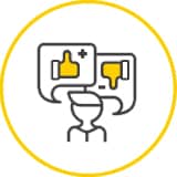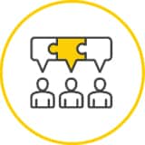 This is an infographic of the four-step process. It contains four icons in a circular motion with yellow arrows. The copy reads: