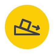 [In vision] A single black line appears from left of frame and forms a close-up illustration of the nearside corner of a truck.