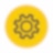 A roundel appears in the middle of the screen, obstructing the red car and the clock but leaving the two orange robotic arms in view. The roundel contains a blue background fill and displays two animations of grey spinning gears. The background fill of the roundel then changes to yellow and the animation of the gears deteriorates simultaneously.