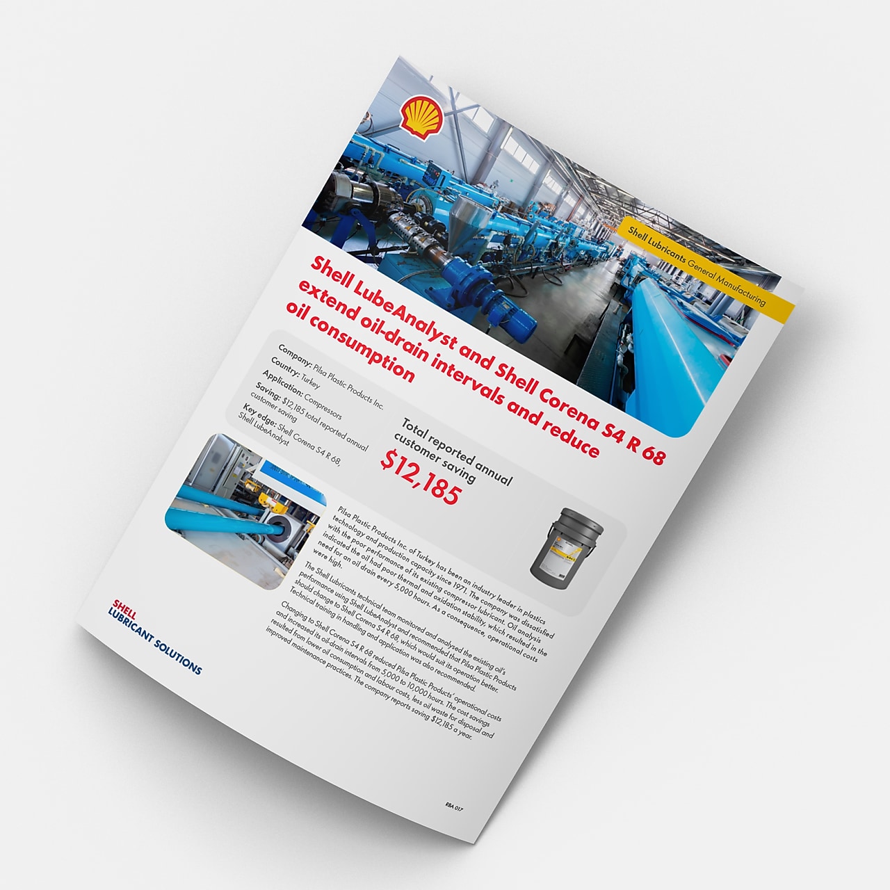 Learn how Shell Corena S4 R 68 and Shell LubeAnalyst combined to help this manufacturing company reduce its oil consumption by 100%.